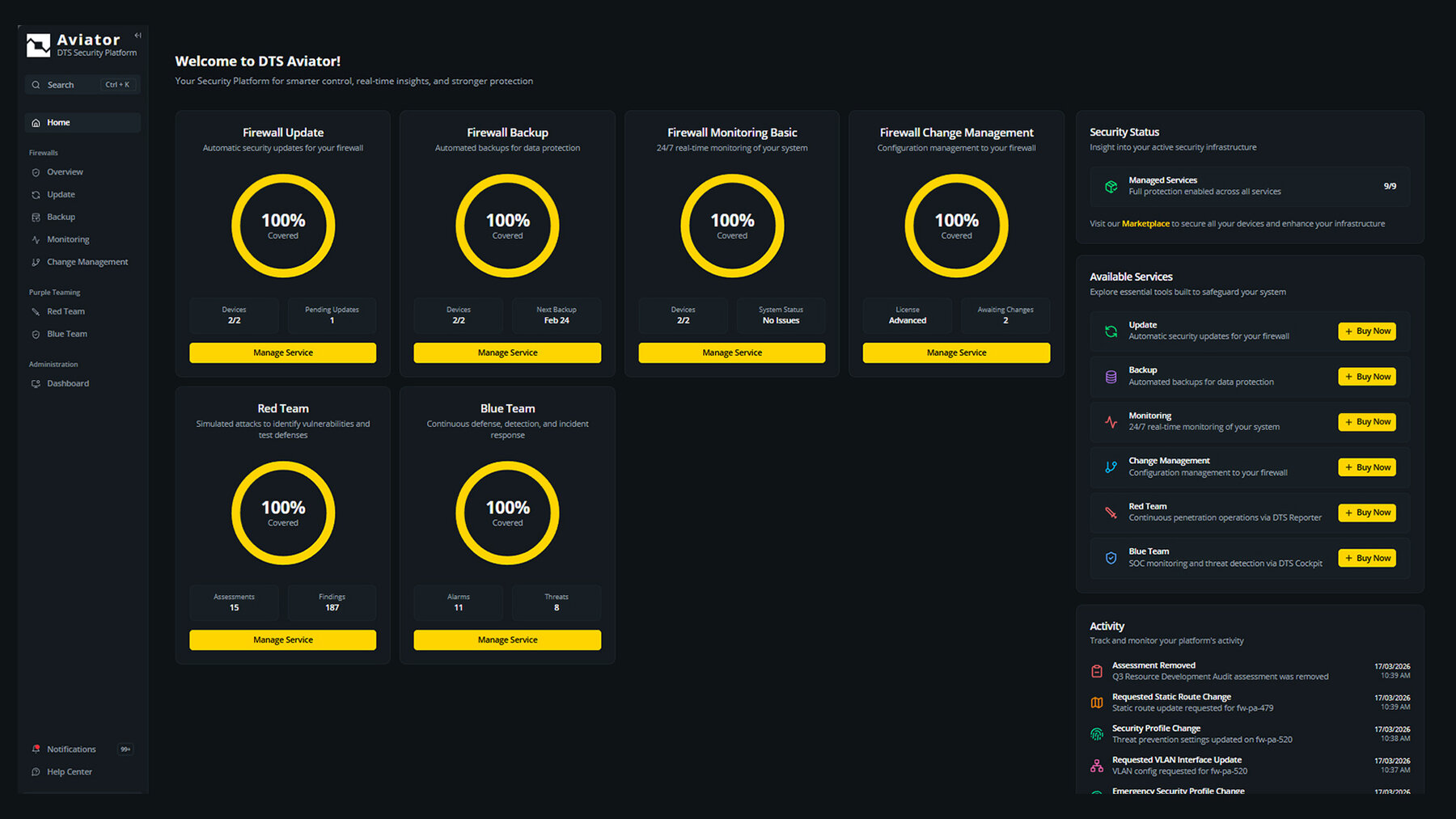 Mit DTS gehen Sie in die nächste Generation der Managed Security Services. DTS Aviator ist die erste Plattform in Deutschland, die alle Managed Security Services transparent und verständlich darstellt sowie uns als MSP steuerbar macht – Schluss mit Blackbox & Intransparenz. Willkommen Nachvollziehbarkeit & Kontrolle!